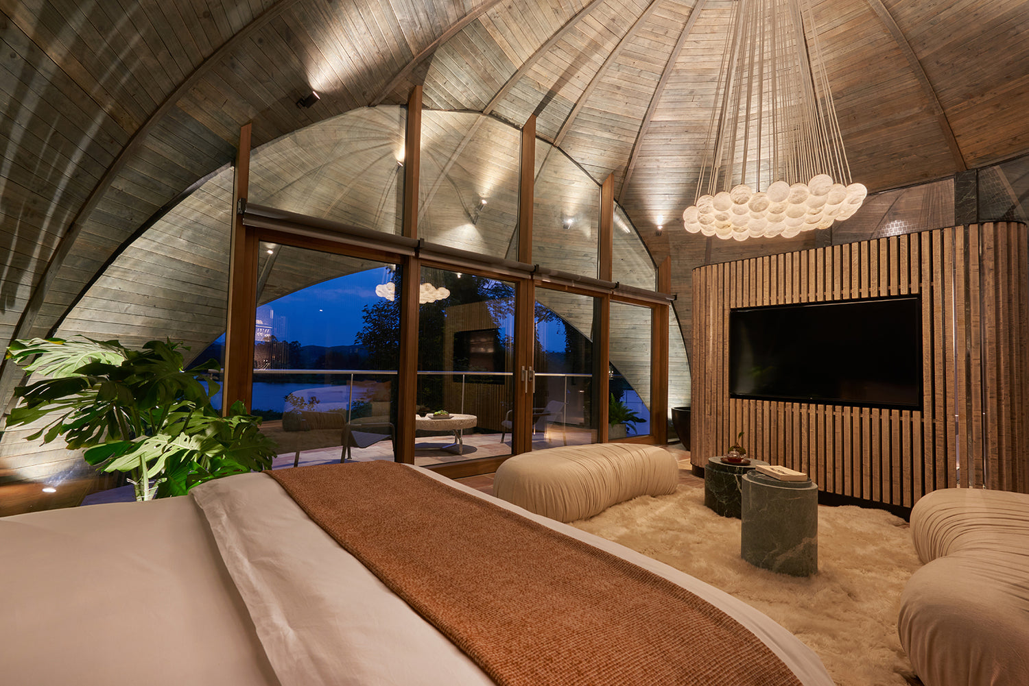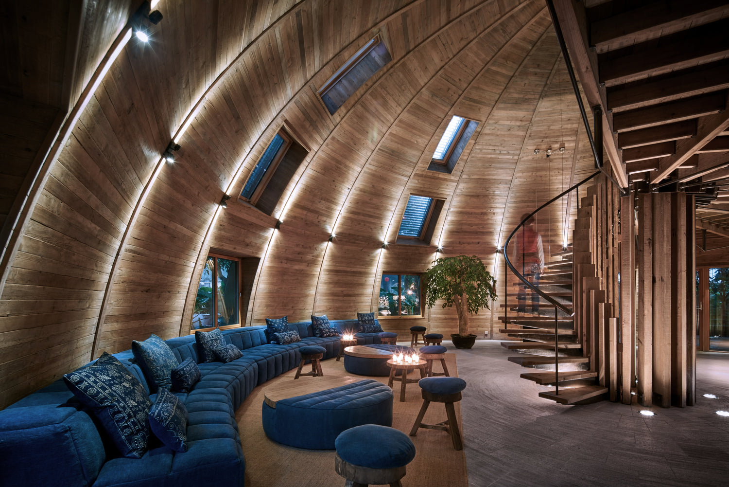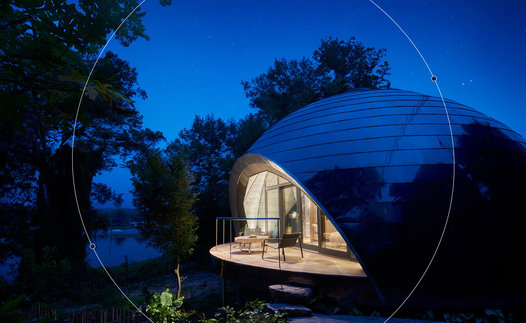We call them MERIDIANS. The dome is an ancient building typology. From igloos to The Pantheon the experience inside them is visceral and wonderful with an enveloping sense of calm created by the arching walls that become roof and then walls again in a single swoop.